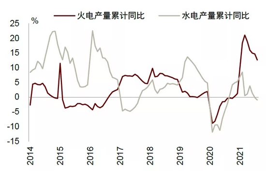 除了能耗双控的短期冲击,电力供给不足也导致了7月以来持续性的限电限产。在需求端,受出口、气温等因素支撑,我国用电需求居高不下。1-8月全社会用电量同比增长13.8%,比规模以上企业发电量增速高2.5个百分点,创下2003年以来增速差的最大值,反映了用电紧张的格局。在供给端,水力发电同比负增长,火力发电则受到煤炭生产监管、进口煤炭减少等约束,难以弥补电力供给缺口。未来电力短缺对工业生产和居民生活的影响,或持续体现。