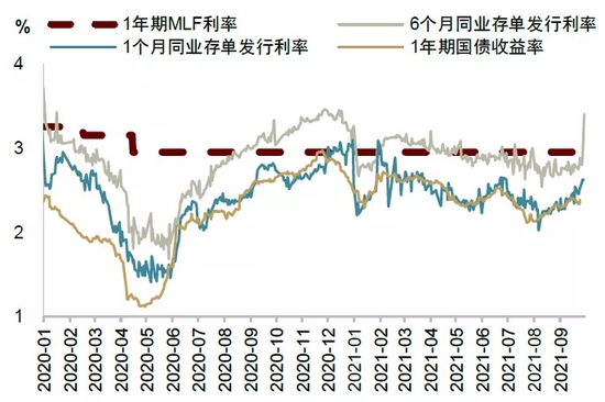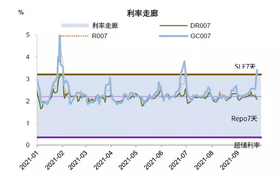 PPI高企,下游利润受挤压加剧,货币难收紧。PPI与CPI同比非食品消费品之差也创17年新高达6.7pct,PPI与CPI同比之差达到历史新高的8.7pct,生产资料与生活资料PPI同比之差达到历史最高的12.7pct。13类供给受限行业对中下游行业的传导看,不少行业8月PPI同比较历史传导幅度仍有0.2-4pct的差距。原材料价格大涨、生产受限、运价大涨,中下游利润受挤压愈发严重。尽管在金融严监管之下,7月降准后流动性偏松,但DR、R仍围绕政策利率波动,货币政策偏稳,特别是8月后1年期国债利率上行、9月MLF等量续作并未降准置换、9月底GC007突破利率走廊上限、6个月同业存单发行利率飙升70bp至3.4%,这些变化反映了发债加速等因素的扰动,但可能也释放了货币政策尚无意大幅放松的信号。