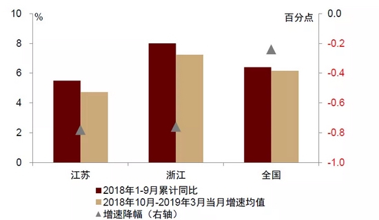 图表9:2018年首次秋冬季限产,江苏、浙江工业生产降幅比全国大约0.5个百分点