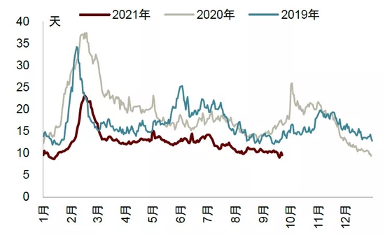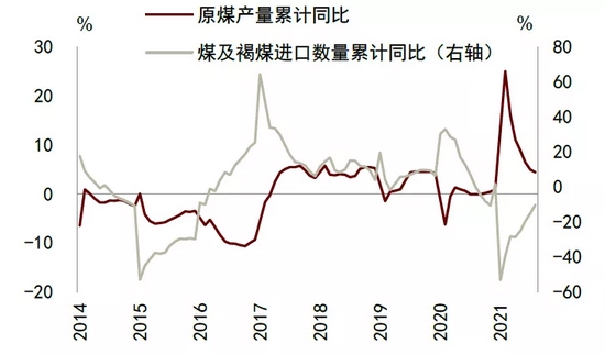 ► 供给端:在需求旺盛的同时,电力供给则受到了结构性的负面冲击。因为天气因素,2021年水电较少,1-8月累计同比下降1%,使得用电缺口更多需要由火电来弥补,1-8月火电累计同比增长12.6%。但是,煤炭供应自2016年去产能以来一直处于被严控状态,2021年1-8月原煤产量仅为小幅增长,累计同比4.4%。与此同时,煤炭进口作为调节供需缺口的重要补充(2020年约占国内产量的8%),1-8月进口量同比下滑达10.3%,使得煤炭供给进一步趋紧。在煤炭供需失衡背景下,沿海八省电厂存煤可用天数降至历史低位,2021年9月22日仅为9.6天。未来电力供给的约束影响可能会持续显现。