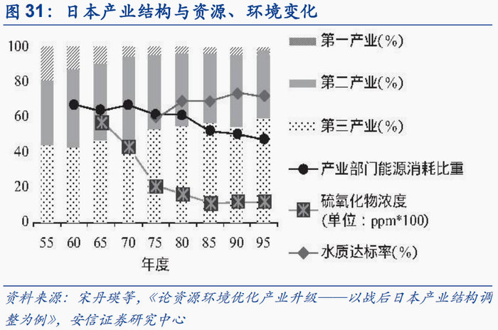 参考文献:《论资源环境优化产业升级——以战后日本产业结构调整为例》,宋丹瑛等,2012