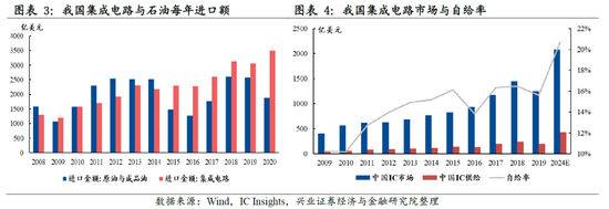 十四五期间将持续加码科技创新,国产替代大趋势下半导体行业有望逐步实现产业自主化。中国每年的半导体进口规模早已超过石油进口规模,半导体领域高度依赖进口,中美贸易摩擦让我们深刻理解到核心技术不能受制于他国。2020年8月国务院表示到2025年中国芯片自给率要实现70%的目标,而2020年我国集成电路自给率不到16%,科技自主任重道远。习主席强调,要“把科技自立自强作为国家发展的战略支撑”,为了解决核心技术“卡脖子”的问题需要在教育、科研、应用等方面持续加码,支持数字经济底层基础的半导体产业发展,半导体产业有望在未来五年内实现芯片设计、制造、封测等领域的国产替代。