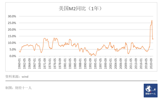 其中的微观机理不难理解。M2可以看作社会中的货币资产,当美国的某投资者持有的货币资产(也就是美元)过多时,他就会倾向于持有一些其他形式的资产。从而使其他类型的资产价格上涨。