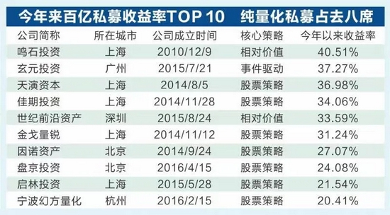 此外,从前三季度业绩看,有业绩展示的77家百亿私募中,有19家未能取得正收益,包括景林资产、东方港湾、淡水泉等明星私募。但20家百亿量化私募无一亏损,盈利最少的也接近10%。