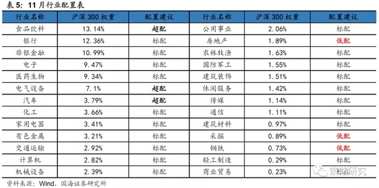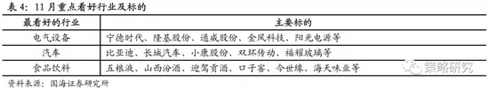 5 11月行业配置:首选电气设备、汽车、食品饮料