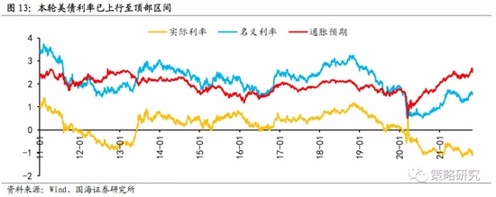 美联储11月开启Taper基本已成定局,预计将在明年年中结束,本轮美债利率已上行至顶部区间,后续随着缩减QE开启叠加美国经济增长转弱,大概率将震荡向下。美联储在11月2-3日召开的FOMC会议上宣布开启Taper已经基本成为市场共识,且渐进式的缩减购债路径也较为明确,每月对美国国债的购买减少100亿美元、对MBS的购买规模减少50亿美元,直至明年年中正式结束本轮QE。从本轮美债利率与美元指数的走势来看,自从8月初美联储正式释放Taper预期后,美国十债利率持续走高,至10月下旬已接近1.70%,较8月初的低点最高抬升约50BP,通胀预期与实际利率均有所贡献。与此同时美元指数也是持续走强,10月以来在94点以上窄幅波动。从2013年美联储Taper的经验来看,美债利率往往是在收紧信号释放后的1-2个月内上行斜率最快,预期先行特征显著,在政策实际执行后开始筑顶回落。当前美债利率已经上行至本轮的顶部区间,后续随着Taper政策落地执行,叠加美国内生经济增长动力的转弱,大概率将震荡向下。其实在10月最后一周随着美国公布的三季度GDP增速不及预期,十债利率已有下行态势,在加息周期开启前,短期内美国十债利率进一步向上突破的可能性不大。