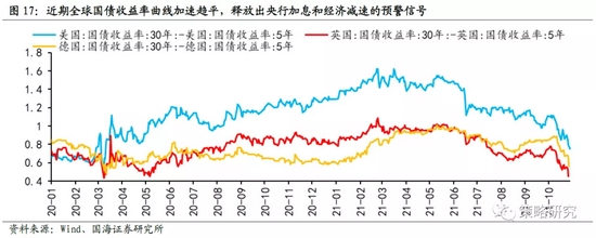 3、流动性维持中性,当前央行对冲的政策思路很难出现方向性改变,除非出现打破平衡的因素,如经济失速、价格显著下行、或者失业率恶化之前,主动宽松的可能性不大。海外方面,全球国债收益率曲线开始趋平,需警惕市场提前交易紧缩,Taper可能是预演,美联储提前开启加息周期可能是真正的风险点。