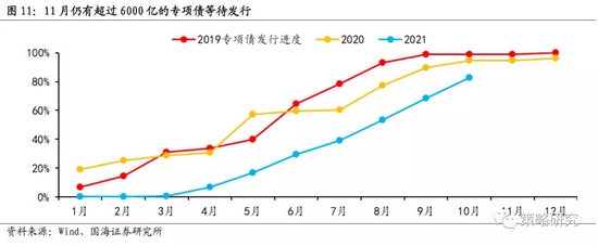 基建、消费、工业等部门很难形成合力,总体是不温不火的状态。从经济的其它部门来看,基建方面,2018年基建增速下台阶之后持续处于低速增长,专项债发行速度加快但很难对基建投资产生决定性作用,基建资金来源专项债占比不大,其次专项债投向中并不是全部都集中在基建相关的领域,并且从专项债发行到形成实物工作量需要一定的时间周期。消费方面,近期国内疫情再度出现反复,进入秋冬季之后疫情防控形势逐渐严峻,疫情防控措施很难大幅放松。工业方面,PPI将逐渐回落,保供稳价的背景下工业部门产出将会有修复,但仍受到能耗、电力等方面的约束。整体而言,基建、消费、工业等部门很难形成合力,总体是不温不火的状态,不是决定经济趋势性变化的核心因素。