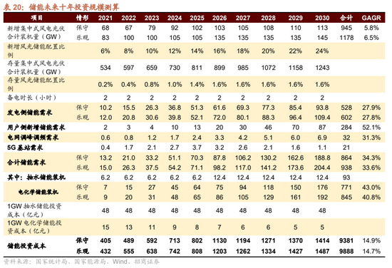 √ 储能:包含发电侧储能、电网侧调峰调频、用户侧谷峰价差套利,以及5G基站等设备储能,最终的投资规模约在年均900-1000亿元。