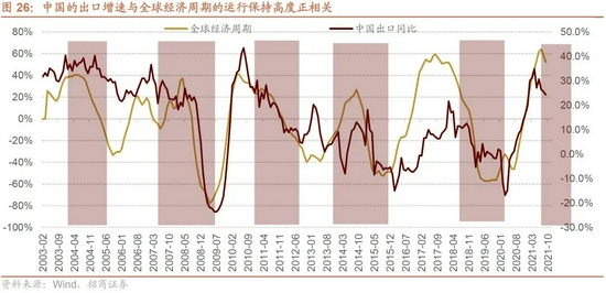 从过去的数据来看,中国的出口增速与全球经济周期的运行还是保持高度的正相关。