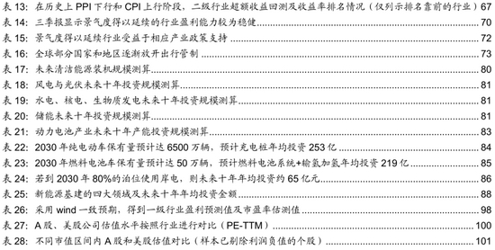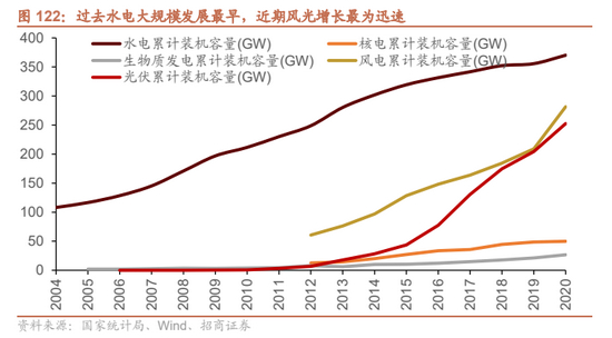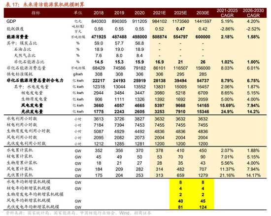 测算结果:根据上述文件的要求,我们对未来能源结构以及风、光、水、核、生物质的年均装机规模进行预测,预计2021-2030年,水电年均装机8GW,核电年均装机4GW,生物质年均装机2GW。风光是未来10年新能源的装机主力,预计2021-2025年,风电年均装机40GW,光伏年均装机81GW.2026-2030年,风电年均装机45GW,光伏年均装机124GW。