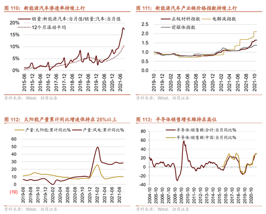 在新增社融增长放缓、企业盈利增长高位回落、产业政策频出等多方面因素的交织下,整体A股估值已经回落至均值附近。目前A股仍处于盈利高位回落阶段,考虑到未来盈利增长后,整体A股和非金融石油石化2022年对应的市盈率分别为10.7倍和16.9倍,处于相对合理甚至偏低的水平。从行业分化的角度来看,新兴行业和传统行业估值之差将会长期存在,但考虑到2022年以银行为代表的金融行业业绩增长相对稳定,传统板块中部分领域的估值有望得到修复,同时物价上行压力会成为明年货币政策的重要考量因素之一,同时美联储已经在本月启动Taper,这对于前期涨幅较大且估值处于相对高位的新兴产业估值继续扩张带来一定的抑制作用。