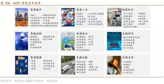 应用及服务层:随着 AIoT 技术日益成熟及应用场景的不断丰富,AIoT应用层多场景需求逐步爆发。