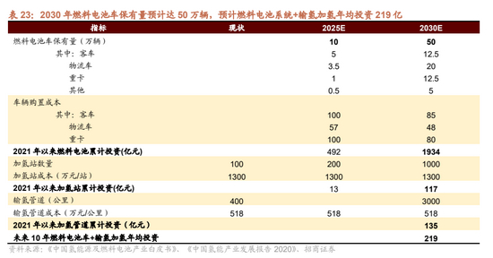 2)氢燃料车+加氢站:年均投资约220亿元