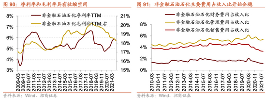 从上市公司盈利角度来看,在经历了2020年疫情冲击之后,此后稳增长发力和全球经济复苏,企业盈利增速持续攀升,今年一季度之后,随着基数明显抬升,且今年以来稳增长力度逐渐减弱,房地产调控力度加大且疫情始终反复影响经济,二季度开始上市公司盈利增速明显下滑,工业企业三个月滚动盈利增速下行至16%附近。而受到大宗商品价格维持高位影响,上市公司成本率基本都不同程度攀升,毛利率下降,剔除金融石油石化后,三季度A股上市公司单季度增速下降至1.8%。