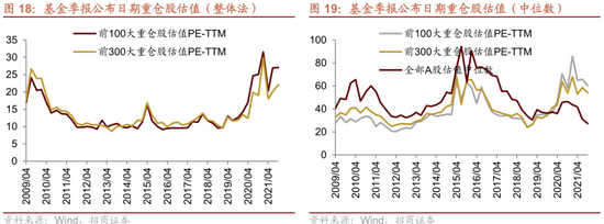 2) 机构重仓板块估值基本在历史高位