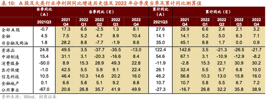 盈利展望:进入2022年后,整体A股盈利增速仍延续逐季放缓的趋势,不过进入下半年后放缓趋势将会收敛,预计全年全部A股和非金融及两油盈利同比增速测算值分别为3.2%/0.9%。消费、信息科技和金融盈利增速相对稳定。