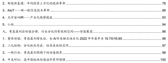 第一,根据前文对于行业盈利判断可知,整体A估盈利增长下行将会贯穿2022年全年,但是以银行为代表的金融行业业绩增长相对稳定,且增速大概率将会高于非金融板块。因此,在2022年新增社融企稳甚至小幅回升的情况下, 银行为代表的金融板块估值有望得到修复。第二,由于新兴行业中集中了较多景气度将会迎来边际改善或者景气度将会得以延续的板块,如食品饮料、农业等消费服务板块景气度边际改善的可能性较大,同时,军工、电新、电子等板块的高景气度大概率将会得到延续,这些领域长期发展空间较为广阔且具有较高的资金青睐度,因此新兴行业估值将会长期明显高于传统行业的估值水平。第三,物价上行压力会成为明年货币政策的重要考量因素之一,流动性调节工具更多的被运用于解决结构性问题;同时美联储已经在本月启动Taper,随后缩减购债的规模将会逐步增大,这对于前期涨幅较大且估值处于相对高位的新兴产业估值扩张带来一定的抑制作用。