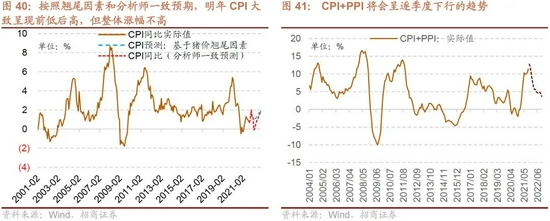 如此一来,明年在基数较高且需求边际回落的背景下,PPI增速持续回落将会拉低非食品CPI,而猪肉价格可能会企稳回升,将会逐渐拉高食品CPI。变量对冲之下,我们预计明年CPI整体保持前低后高的态势,但整体增幅不会太大,CPI+PPI将会保持下行的态势。