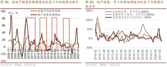 从房地产部门的情况来看,由于今年以来各地推出了包括房屋指导价等一系列措施,而房地产税的试点也基本箭在弦上,房地产销售平均价格开始持续回落,涨幅明显放缓,在房价低迷、房地产税推出之前,居民购房意愿保持低迷,直至后续观察房地产政策会否有相应的调整。毕竟十四五规划中,发展新型城镇化、有效增加保障性住房供给是非常重要的发展目标,2022年三季度前后销售可能会企稳。
