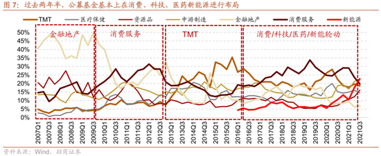 居民资金通过公募基金入市也使得基金重仓和加仓的方向出现了大涨。过去两年半,公募基金基本上在消费、科技、医药和新能源进行布局,由于规模不断增加,公私募调仓对市场行情的影响越来越大,而且在增量资金的强化效应下,消费、科技、医药和新能源也呈现此起彼伏的大型投资机会。