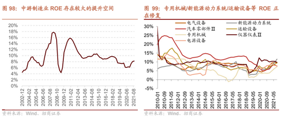 由于机构投资者更希望追求长期价值。因此,对于长期空间大,成长性强的行业和赛道,一旦行业景气度出边好转迹象,投资者通常会给未来的成长性以更高的溢价,这也是为什么2019年以来局部块涨幅非常大关键原因之一。因此在这一轮景气上行中消费、医药、新能源的估值水平均突破了过去10年的最高水平。当然反过来在景气回落的时候,由于估值的波动比较大,也会出现非常明显的回撤。