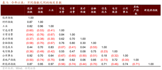 行业表现的相关性明显下降
