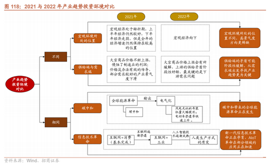 根据A股所处的阶段,2022年大盘风格相对占优;主线沿着“逆周期”和“顺科技”两个方向布局。逆周期政策布局“流动性改善”“稳社融”“新(能源基建与数字)基建”“稳地产”“促销费”;科技领域关注“元宇宙+VR”以及AIOT应用落地(智能驾驶+工业互联网)。