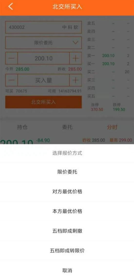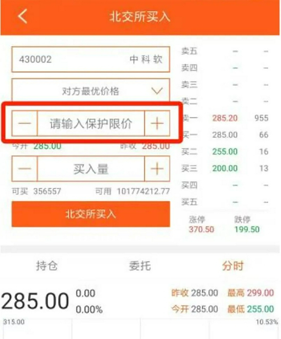 举个例子,小明在买入某只北交所股票之前,填入买入上限100元。如果该股很快涨过了100元,就不会成交,避免了高位接盘的风险,反之亦然。