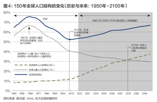 人口红利的消退(老龄化与少子化)是中国乃至全球经济增长面临的长期、刚性约束。历史上,战争、饥荒、病菌和自然灾害等是影响人口数量与结构变化的重要因素。二战后的和平发展与技术进步使人类在很大程度上克服了各类“生存危机”,平均预期寿命显著提升。随着战后“婴儿潮”一代渐渐步入老龄化,曾经的人口红利转变为“人口负债”,这对经济增长和大类资产价格有深刻含义。
