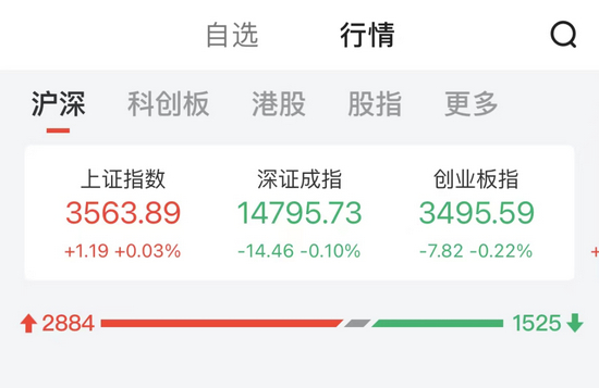 11月30日,A股三大指数震荡整理,上证指数涨0.03%,报3563.89点;深证成指跌0.10%,报14795.73点;创业板指跌0.22%,报3495.59点。