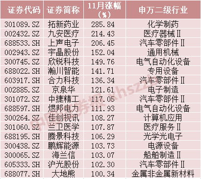 11月A股收官!最牛股月涨286%,17股翻倍,这一板块成牛股大本营