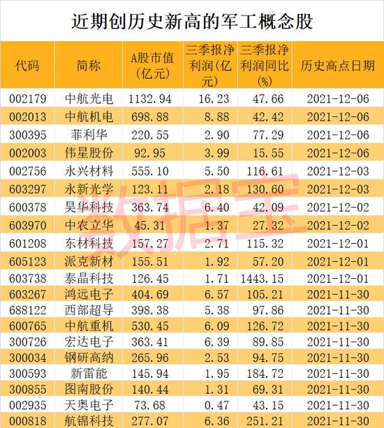 年内多只军工细分龙头创新高