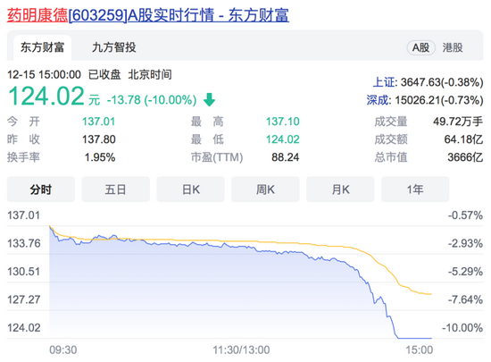 药明康德直接跌停,这是该股自2018年5月份上市以来出现的第一个跌停板。同时,港股药明生物午后也直线下挫,盘中一度跌近25%,最终收跌19.24%。