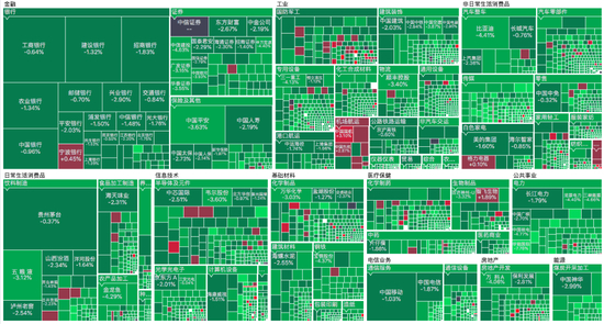 对于A股大跌,有人调侃:今天是小年,小年要吃饺子,没肉馅了,所以割韭菜。当然,这只是段子。下面是今天的股市地图。