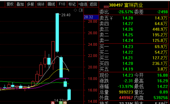 其中,医药股早盘再度大幅杀跌,连续下杀三天,按说有个反弹吧。今天早盘九安医疗三跌停,吸引了资金抄底,由跌停一度拉涨5%,带动资金纷纷效仿去撬板,精华制药、亚太药业等由跌停板拉起。不过,九安医疗冲高回落,精华制药等又回到跌停板,到下午九安也跌停,几十亿撬板资金被埋。像富祥药业继续释放亏钱效应,今天依然大跌14%,四天腰斩了。