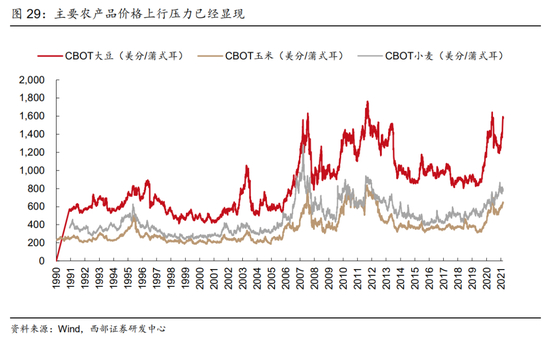 当前来看,随着油价的快速上涨,叠加南美气候异常影响,全球主要基础农产品的价格均已经呈现明细上涨压力,尤其是作为饲料主要来源的大豆和玉米,价格都已经接近历史新高水平,随着近期市场对于通胀的关注度持续上升,新一轮的通胀交易也即将开启。