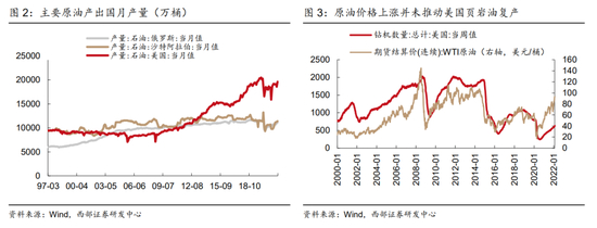 美国清洁能源政策叠加地缘政治冲突,原油价格易涨难跌。从外部环境来看,我们认为原油价格的核心矛盾在于美国自身页岩油产能难以释放,而非OPEC增产政策或是欧洲地缘政治冲突。自2014年页岩油革命以来,美国已经成为全球最大的产油国,当前美国原油产量已经接近于沙特和俄罗斯两国之和,成为主导全球油价的核心因素。从历史上看,原油价格与美国油井数量具有高度相关性,但是在2020年拜登政府上台后推动的清洁能源政策,使得美国页岩油产能受到抑制,叠加疫情扰动,在油价快速上行的环境下,美国页岩油产能难以得到充分释放,这也决定了当前环境下油价整体易涨难跌。叠加1月以来欧洲地缘政策冲突的风险不断发酵,油价开始呈现脉冲式上行,推升大宗商品价格整体走高。而随着下半年美国中期选举的临近,清洁能源政策作为拜登的基本政策之一,出现弱化的概率相对较低,我们认为油价的高点可能还尚未到来。