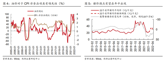 国内下半年CPI将面临食品项和非食品项的双重压力。从历史上看,油价对于国内CPI中的非食品分项具有较为明细的领先性,近期油价的加速对于下半年的CPI非食品项将形成较大压力。另外一方面,国内能繁母猪存栏变化来看,今年6月生猪供给将达到低位,意味着新一轮的猪周期逐步启动,猪肉价格的上行也将推升食品项通胀的中枢上行。