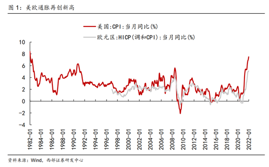 受到地缘政治引发的大宗商品价格快速上行,以及疫情扰动下恢复缓慢的全球供应链影响,全球资本市场开始逐步正视今年的所要面临的通胀风险。2月11日,美国劳工部劳工统计局发布1月CPI数据,其中名义CPI同比上涨7.5%,继续创下1982年2月以来新高,也大幅超过市场此前7.2-7.3%的预期。从官方公布的数据分项来看,燃油价格环比涨幅达到9.5%,同比涨幅达到惊人的46.5%。能源整体支出环比增加0.9%,近12个月涨幅也达到27%;食品价格在一月亦环比走高0.9%。在核心CPI的分项中,一直推动通胀飙升的二手车价格也在一月环比提升1.5%;占CPI三分之一比重的住所支出一月环比提高0.3%。另外一方面,欧盟统计局2月2日公布数据显示,受能源价格大幅上涨影响,2022年1月欧元区通胀率持续攀升,按年率计算达5.1%,高于市场预期,并再创历史新高。而从当前的宏观环境来看,影响通胀的主要因素在短时间内都难以得到缓解,这也使得海外市场的交易情绪开始逐步转向对通胀的再定价。