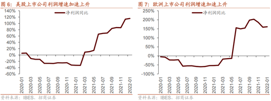 欧美上市公司盈利转正并高增。从上市公司角度来看,根据IBES对上市公司的财务预测数据,美股上市公司的盈利增速在2021年3月转正,当前已经连续上行11个月,欧洲股市上市公司的盈利在2021年6月出现正增长,连续8个月保持了较高的增速。