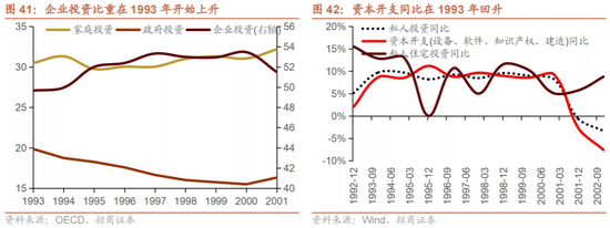 私人投资在2004年出现明显上行。从私人企业投资来看,企业投资占总投资的比重在2005年出现拐点,资本开支同比在2003年底出现拐点,但是增速较慢,2004年开始出现明显上行,至2008年出现明显下滑。