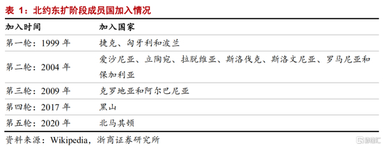 乌克兰处于接壤里海和俄罗斯的重要战略地带,是北约东扩和俄罗斯战略红线的关键。1994年第13次布鲁塞尔会议,美国领导的北约正式在布鲁塞尔外长会议上提出其北约东扩战略。第一轮东扩为1999年吸收波兰、捷克和匈牙利加入北约,将北约东部防线外推。第二轮东扩为2004年进一步吸收爱沙尼亚、立陶宛、拉脱维亚、斯洛伐克、斯洛文尼亚、罗马尼亚和保加利亚加入北约,成员国数量增至26个,此轮东扩一方面向东推进边界,另一方面以俄罗斯为中心自北向南形成波罗的海-黑海-高加索-中亚的弧线,对俄罗斯在波罗的海和黑海区域的出海口形成压制;此外,本轮东扩中北约曾在2008年布加勒斯特峰会中承诺将乌克兰和格鲁吉亚加入北约,但由于俄罗斯的反对未能成功。乌克兰南邻里海、东接俄罗斯,是俄罗斯西南方向的重要通道;格鲁吉亚则具有毗邻里海、接壤俄罗斯战略位置,在对俄罗斯里海海域形成包围和北约东部沿线东扩具有重要意义。第四、五轮东扩分别为2017和2020年接纳巴尔干半岛上的黑山和北马其顿加入北约。