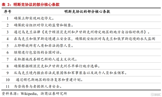 《明斯克协议》是此前乌克兰和俄罗斯以和平方式解决外交问题的核心框架,俄罗斯宣布顿涅茨克和卢甘斯克独立已在一定程度上破坏这一框架。《明斯克协议》达成于2014年9月,是为和平解决乌克兰危机而生,核心要点包括以下方面:一是立刻实现乌克兰和俄罗斯的双边停火,也是明斯克协议的最核心条款;二是确保欧洲安全与合作组织对双边停火的落实情况进行监督和核查;三是通过乌克兰法律《关于顿涅茨克州和卢甘斯克州特定地区的地方自治临时秩序》,本次俄罗斯宣布顿涅茨克和卢甘斯克独立也是对这一条款的违背。