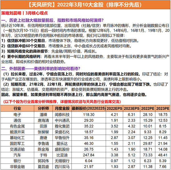 原标题:天风 · 十大金股丨3月