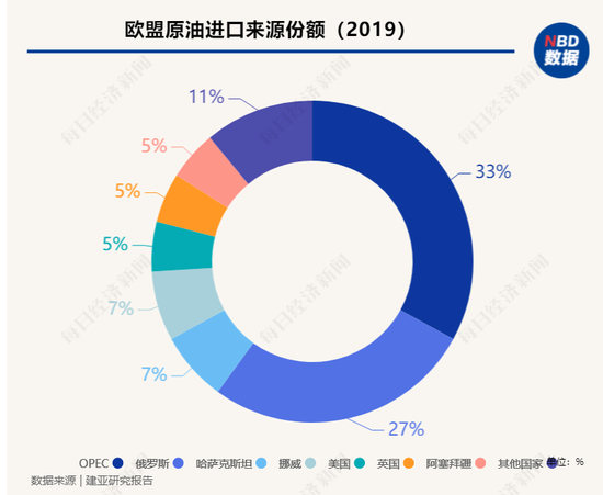 作为俄罗斯的主要贸易对手方,2021年,欧盟占俄罗斯出口38%、进口32%。