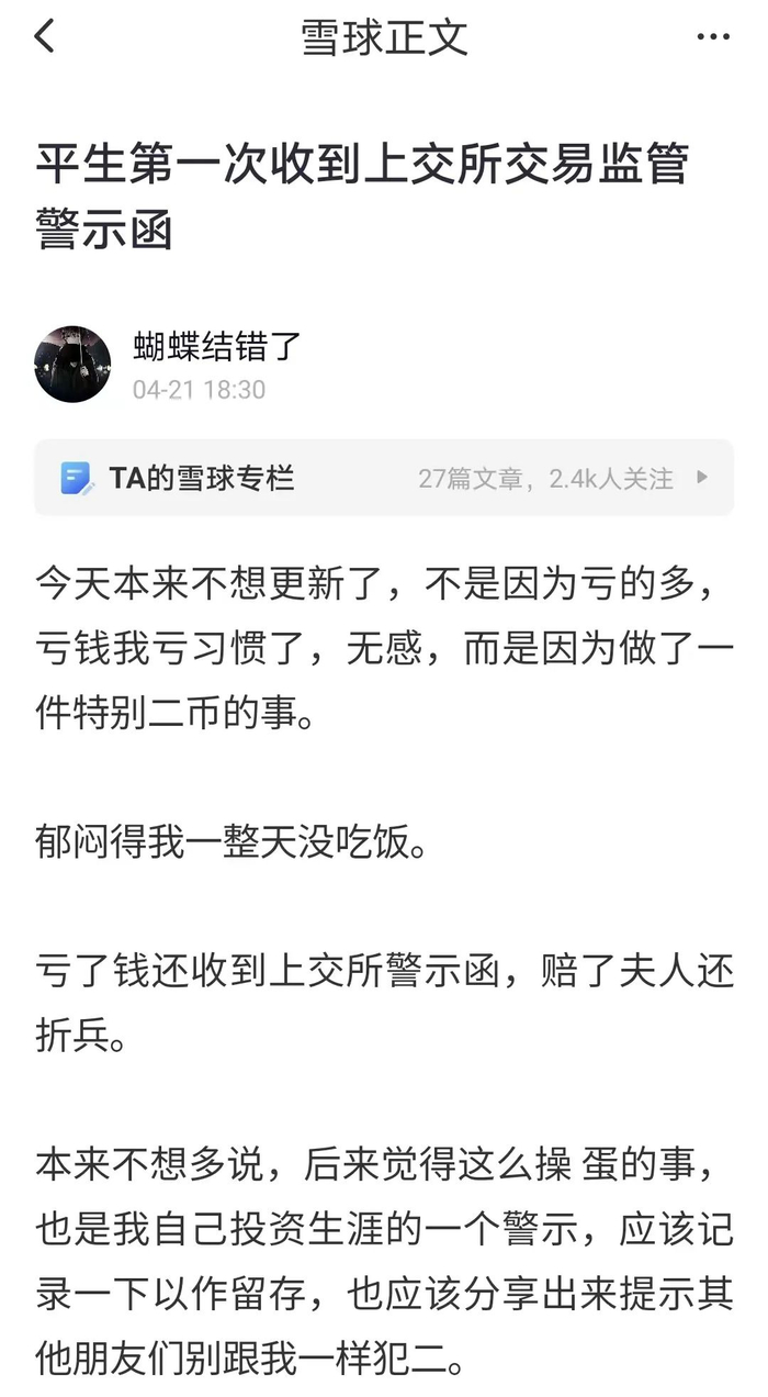 以下为4月21日球友@蝴蝶结错了 在雪球APP发帖内容: