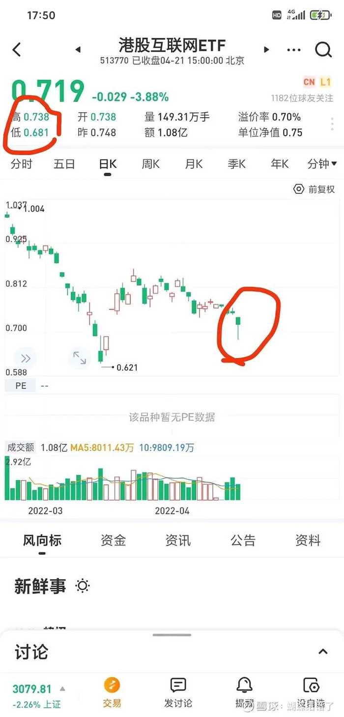事情是酱紫的,有些朋友应该知道我持有一只冷门的港股互联网小基金,就这只港股互联网ETF(SH513770),持有100万股,浮亏大概25%。