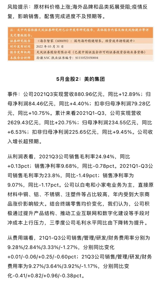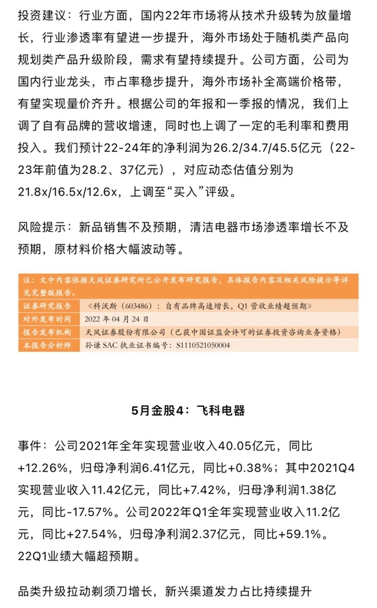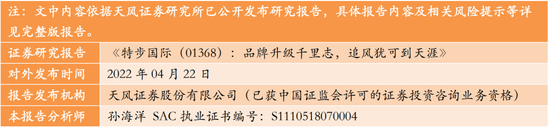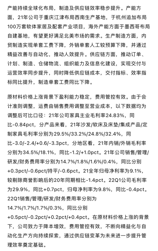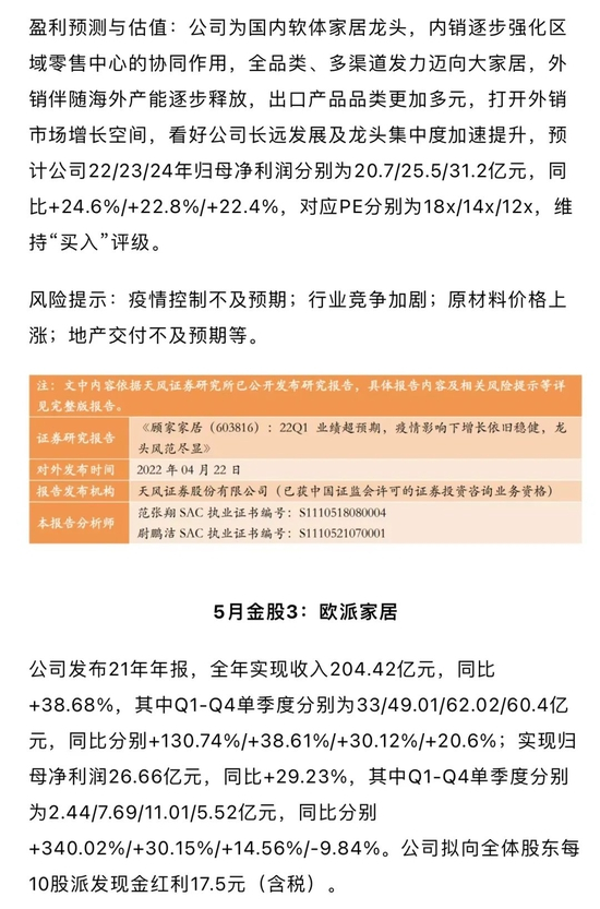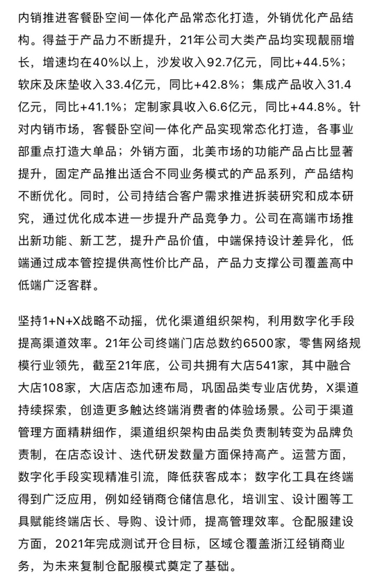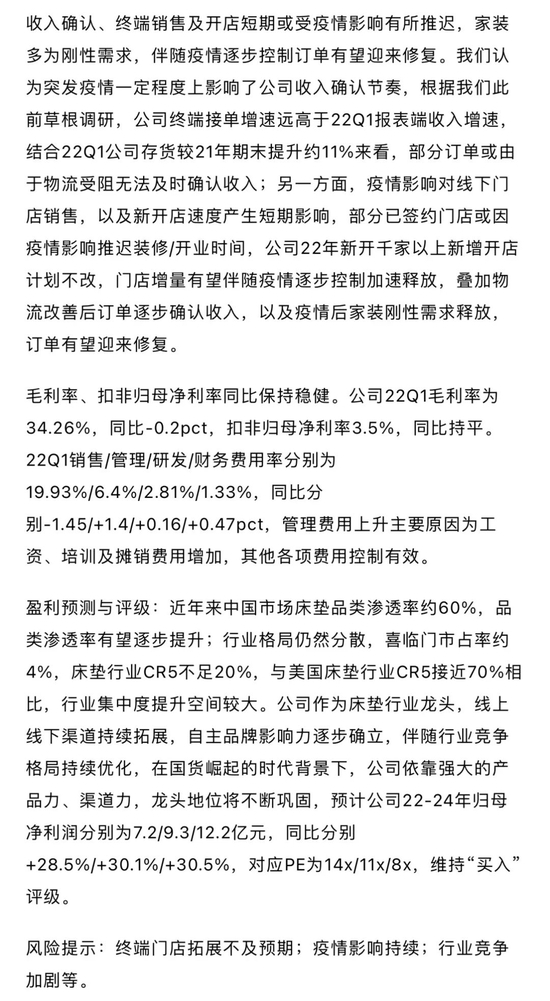 风险提示:疫情局部反复影响后续线下客流;原材料及人工、节能环保要求稳步提升对产品价格压力;国内竞品品牌发力影响市场份额等。