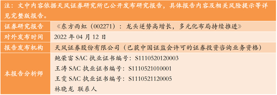 22Q1收入(+34.1%)和归母净利润(+30.26%)均实现快速增长,尤其扣非净利润3.11亿元,同比增长60.17%,营收增长主要系光通信市场回暖、智能电网产品、工业智能产品和海外市场需求增长所致,扣非利润高增长预计源于光纤光缆涨价的业绩弹性显现。